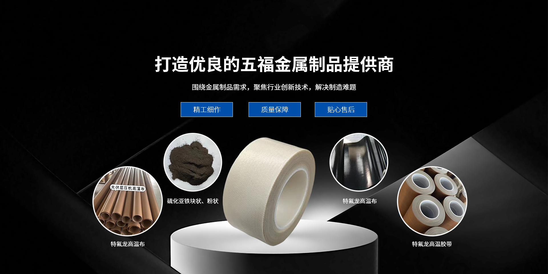 泰州市五福金屬制品有限公司位于泰興市根思鄉老葉村鞠前是一家集研發、生產、銷售為一體生產企業。主要生產銷售:硫化亞鐵,和特氟龍高溫布,高溫膠帶,膜膠帶,網帶,輸送帶等。五福不斷引進設備和技術,建立強大的研發、管理及業務團隊。品質是企業的核心力,;與客戶共同應對市場變換,并根據客戶實際要求達成共贏。公司不斷引進設備和技術以及人才,建立強大的研發、管理及業務團隊,在國內與多家大型集團企業合作。